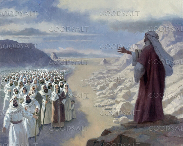 Moses is at the base of Mt. Sinai, holding the two tablets on which God's finger had inscribed His laws. by Lifeway Collection