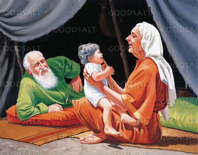 Abraham and Sarah play with baby Isaac. by Lifeway Collection