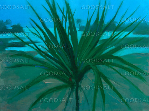 This is a lake scene at night with one solitary plant growing on the shore. by Lifeway Collection