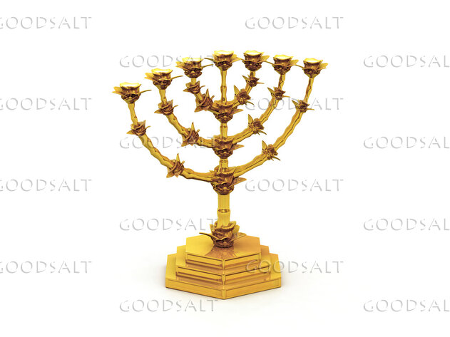 31 “You shall make a lampstand of pure gold. The lampstand shall be made of hammered work: its base, its stem, its cups, its calyxes, and its flowers shall be of one piece with it.32 And there shall be six branches going out of its sides, three branches of the lampstand out of one side of it and three branches of the lampstand out of the other side of it;