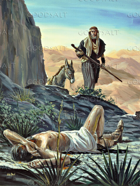 The good Samaritan finds a Jewish man in need of help. by Pacific Press