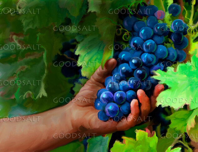Grapes on the vine, being picked by a child by General Conference