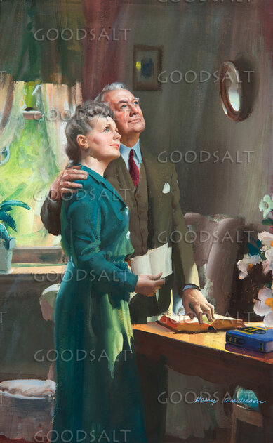 Elderly couple holding Bible and looking upward by Review & Herald Publishing