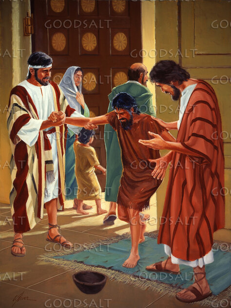 Peter and John heal the lame man outside the Temple. by Lifeway Collection