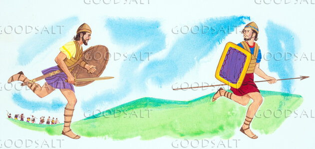 One soldier chases an enemy. by Review & Herald Publishing