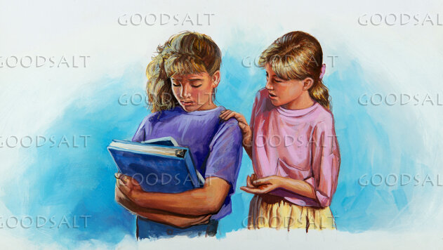 Young girl comforting sad friend by Review & Herald Publishing