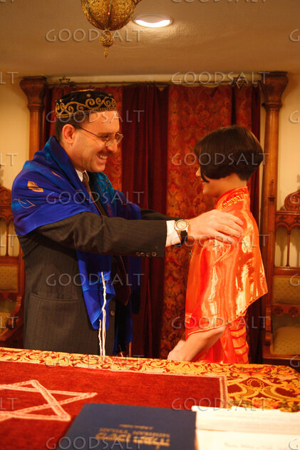 1. IDAHO. Boise. Rabbi blessing Asian Jewish girl on the bimah