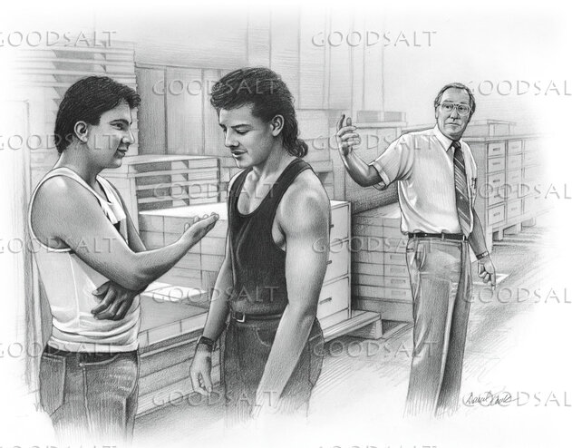 Two workers discuss issues as the boss looks on by Darrel Tank
