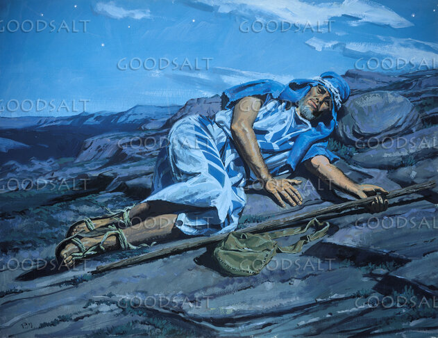 10 Jacob left Beersheba and went toward Haran.11 And he came to a certain place and stayed there that night, because the sun had set. Taking one of the stones of the place, he put it under his head and lay down in that place to sleep.12 And he dreamed, and behold, there was a ladder set up on the earth, and the top of it reached to heaven. And behold, the angels of God were ascending and descending on it!