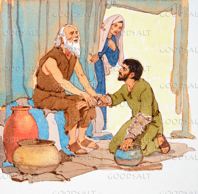 Jacob tricks his father into believing he is his brother Esau, stealing his blessing. by Lifeway Collection