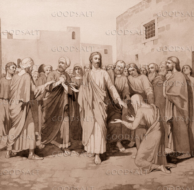 18 While he was saying these things to them, behold, a ruler came in and knelt before him, saying, “My daughter has just died, but come and lay your hand on her, and she will live.”19 And Jesus rose and followed him, with his disciples.20 And behold, a woman who had suffered from a discharge of blood for twelve years came up behind him and touched the fringe of his garment,21 for she said to herself, “If I only touch his garment, I will be made well.”22 Jesus turned, and seeing her he said, “Take heart, daughter; your faith has made you well.” And instantly the woman was made well.