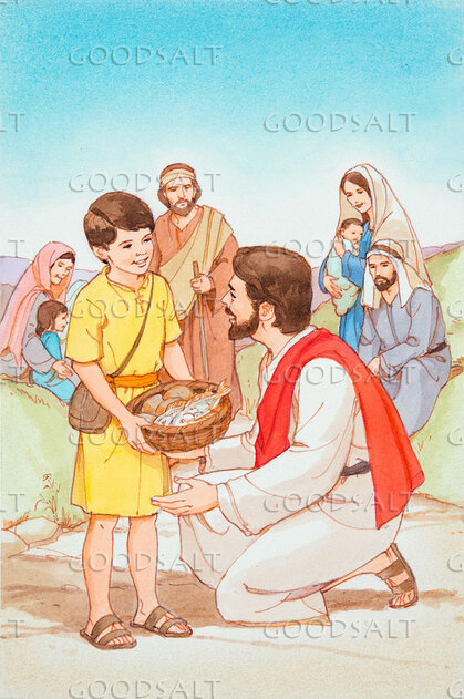 Jesus Accepts Gift of Loaves and Fishes From Small Boy