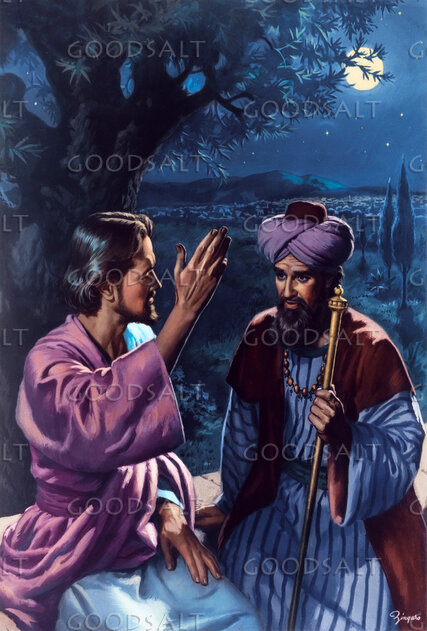 John 31 Now there was a man of the Pharisees named Nicodemus, a ruler of the Jews.2 This man came to Jesus by night and said to him, “Rabbi, we know that you are a teacher come from God, for no one can do these signs that you do unless God is with him.”3 Jesus answered him, “Truly, truly, I say to you, unless one is born again he cannot see the kingdom of God.”4 Nicodemus said to him, “How can a man be born when he is old? Can he enter a second time into his mother's womb and be born?”5 Jesus answered, “Truly, truly, I say to you, unless one is born of water and the Spirit, he cannot enter the kingdom of God.6 That which is born of the flesh is flesh, and that which is born of the Spirit is spirit.7 Do not marvel that I said to you, ‘You must be born again.’8 The wind blows where it wishes, and you hear its sound, but you do not know where it comes from or where it goes. So it is with everyone who is born of the Spirit.”9 Nicodemus said to him, “How can these things be?”10 Jesus answered him, “Are you the teacher of Israel and yet you do not understand these things?11 Truly, truly, I say to you, we speak of what we know, and bear witness to what we have seen, but you do not receive our testimony.12 If I have told you earthly things and you do not believe, how can you believe if I tell you heavenly things?13 No one has ascended into heaven except he who descended from heaven, the Son of Man.14 And as Moses lifted up the serpent in the wilderness, so must the Son of Man be lifted up,15 that whoever believes in him may have eternal life.16 “For God so loved the world, that he gave his only Son, that whoever believes in him should not perish but have eternal life.17 For God did not send his Son into the world to condemn the world, but in order that the world might be saved through him.18 Whoever believes in him is not condemned, but whoever does not believe is condemned already, because he has not believed in the name of the only Son of God.19 And this is the judgment: the light has come into the world, and people loved the darkness rather than the light because their works were evil.20 For everyone who does wicked things hates the light and does not come to the light, lest his works should be exposed.21 But whoever does what is true comes to the light, so that it may be clearly seen that his works have been carried out in God.” | |