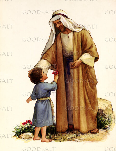 Jesus and Small Child with Flowers