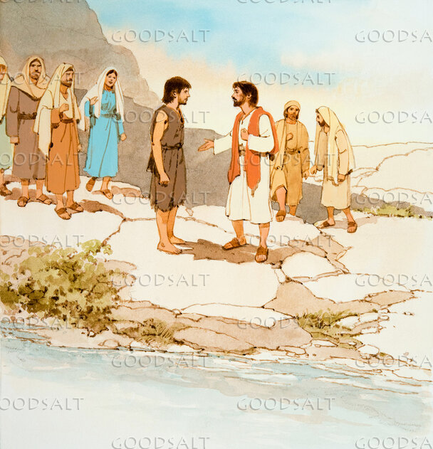 Jesus comes to John the Baptist at the Jordan River. by Lifeway Collection