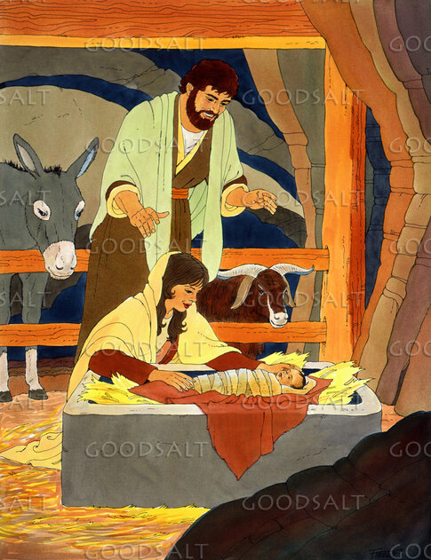 Mary, Joseph and baby Jesus in the Stable of Bethlehem. by Lifeway Collection