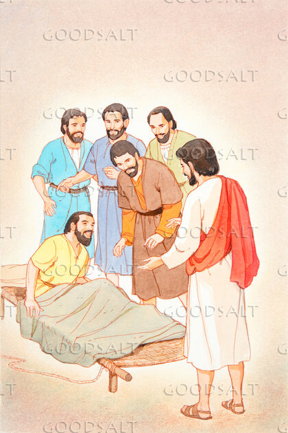 Jesus heals the Lame Man whose four friends brought him. by Lifeway Collection