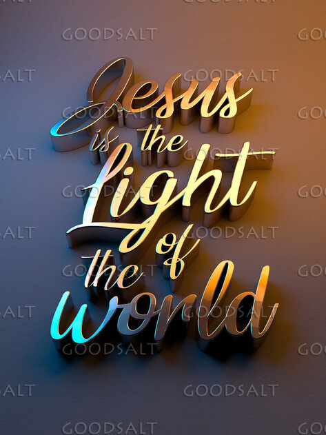 Text in 3D of Jesus is the light of the world, with bright yellow and blue colors by Kevin Carden