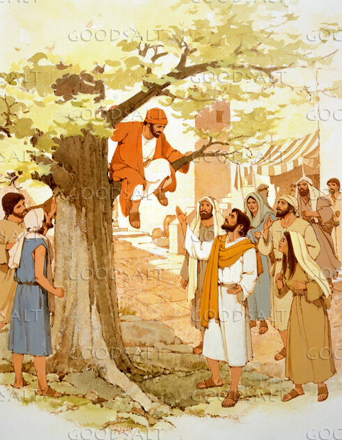 Jesus speaks to Zaccaeus in there sycamore tree by Lifeway Collection