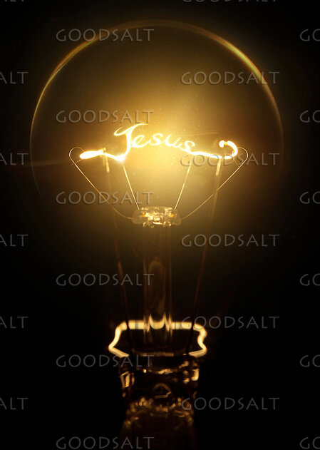 A light bulb glowing with Jesus in the middle by Kevin Carden