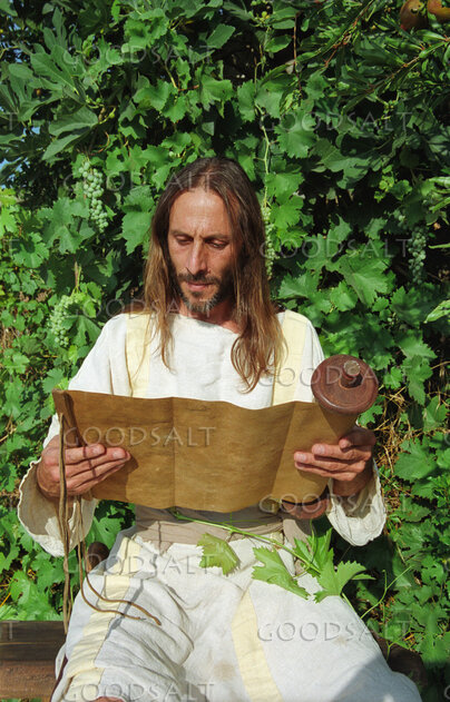 Jesus reading a scroll in a secluded place. by Frank Gampel
