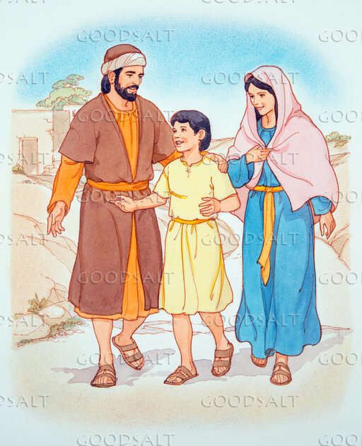 Mary, Joseph and Young Jesus head out on a journey to Jerusalem. by Lifeway Collection