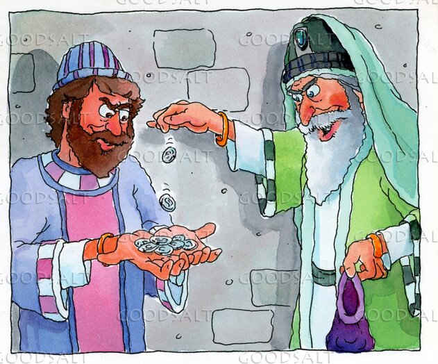 Judas betrays Jesus for 30 pieces of silver. by Educational Concepts