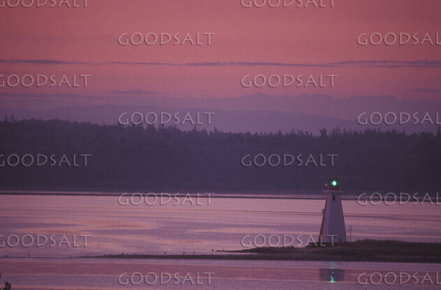 Lighthouse at dusk with a mauve sky and sea by John Baker