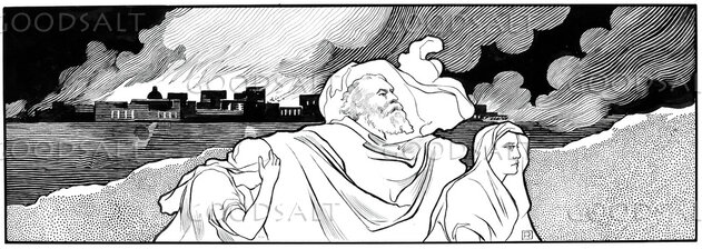 Lot fleeing Sodom with his daughters by Review & Herald Publishing