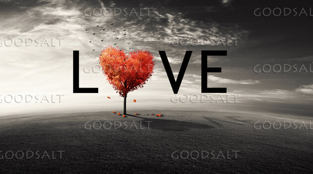The word Love spelled with the tree made into the shape of a heart. by Kevin Carden