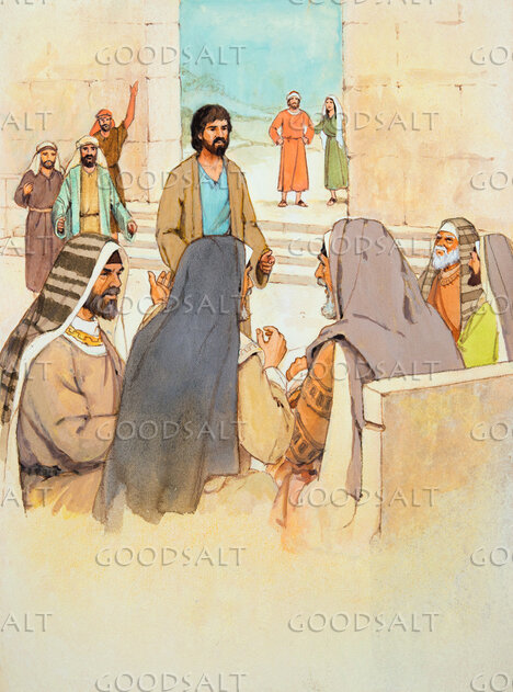 The man born blind, having been cured by Jesus, is interrogated by the religious leaders. by Lifeway Collection