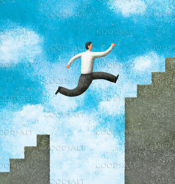 Man leaping on stairs. by Krieg Barrie