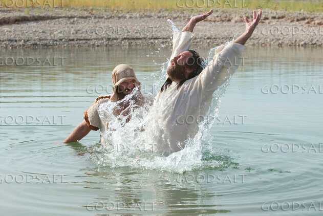 A man comes out of the water rejoicing after being baptized by Erik Stenbakken