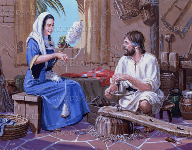 Mary and Joseph in the carpenter shop. by Lifeway Collection