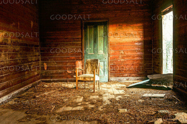 Ruined interior of historic country hotel. by Mal Austin