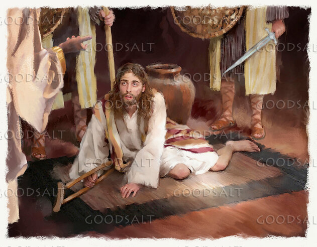 Mephibosheth the crippled young man before King David by Lars Justinen