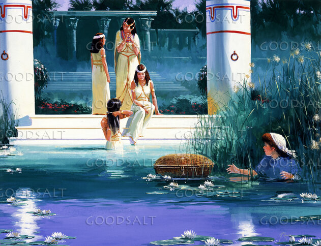 Miriam watcher her baby brother Moses' basket boat float toward the Egyptian princess who would adopt and rear him. by Lifeway Collection