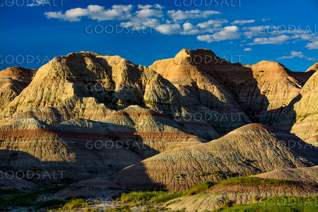 Early light warms the colored hills of the Badlands. by Mary Lane Anderson