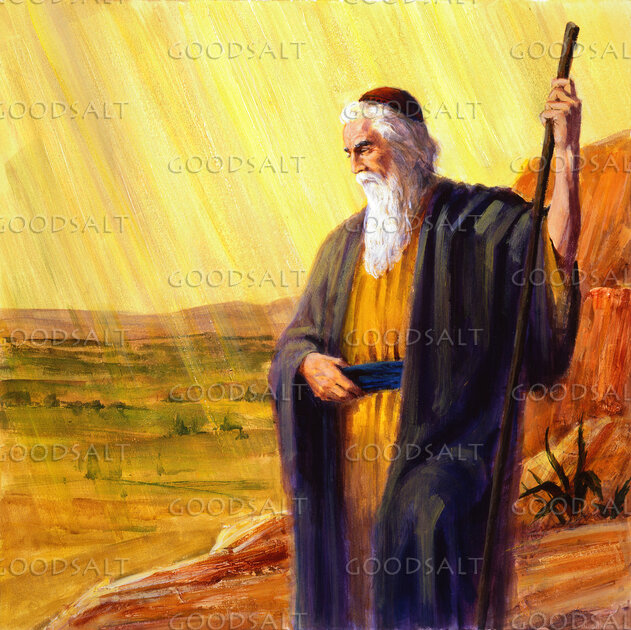 Moses views the Promised Land from a mountain. by Lifeway Collection