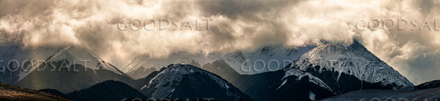 mountains, snow, riverbed, rocks and dramatic skies - alpine scenery by Mal Austin