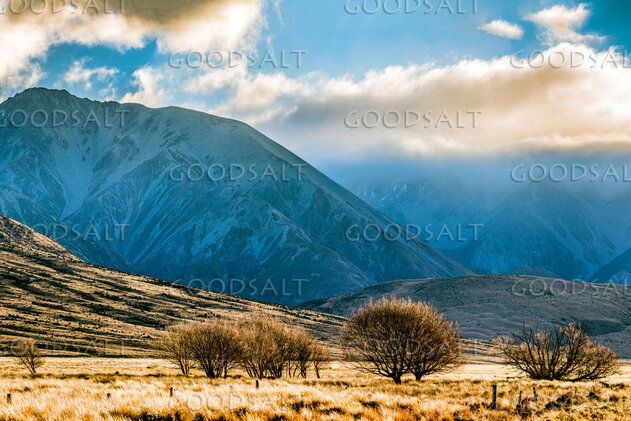 mountains, snow, riverbed, rocks and dramatic skies - alpine scenery by Mal Austin