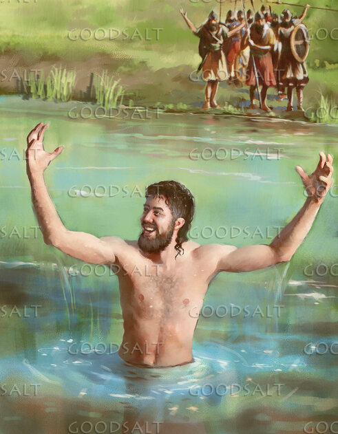 14 So he went down and dipped himself seven times in the Jordan, according to the word of the man of God, and his flesh was restored like the flesh of a little child, and he was clean.15 Then he returned to the man of God, he and all his company, and he came and stood before him. And he said, “Behold, I know that there is no God in all the earth but in Israel; so accept now a present from your servant.”16 But he said, “As the LORD lives, before whom I stand, I will receive none.” And he urged him to take it, but he refused.17 Then Naaman said, “If not, please let there be given to your servant two mules' load of earth, for from now on your servant will not offer burnt offering or sacrifice to any god but the LORD.18 In this matter may the LORD pardon your servant: when my master goes into the house of Rimmon to worship there, leaning on my arm, and I bow myself in the house of Rimmon, when I bow myself in the house of Rimmon, the LORD pardon your servant in this matter.”19 He said to him, “Go in peace.” But when Naaman had gone from him a short distance,