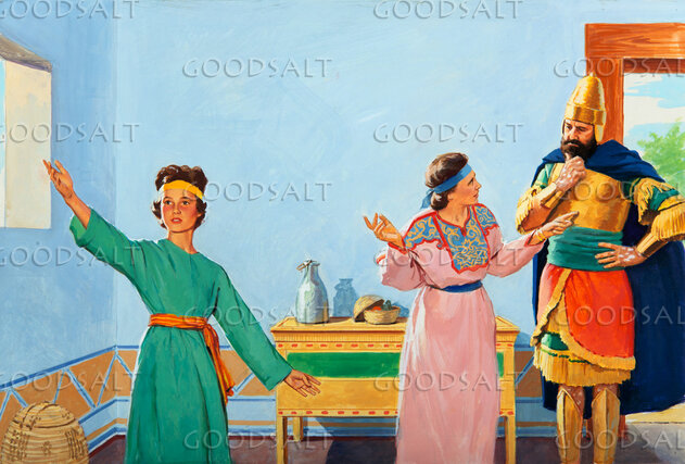 Little Maid tells Naaman there is a prophet in Israel who can cure his leprosy. The story of Naaman. My Bible Friends. Part of a series. by Review & Herald Publishing