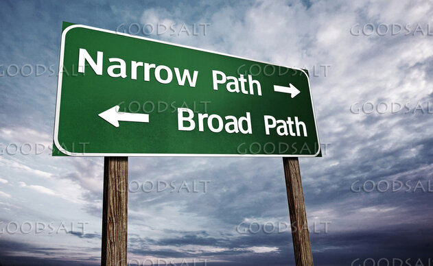 A highway sign with two directions to the narrow and broad path. by Kevin Carden