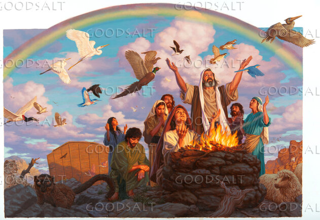 Noah and his family offer a sacrifice after the Great Flood. by Review & Herald Publishing