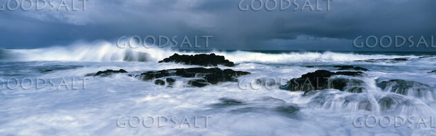stormy shoreline breaking over rocks by Mal Austin