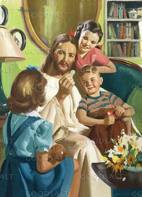 Secondary Keywordscaucasian   children   coin   Jesus   offering   tithe   vintage