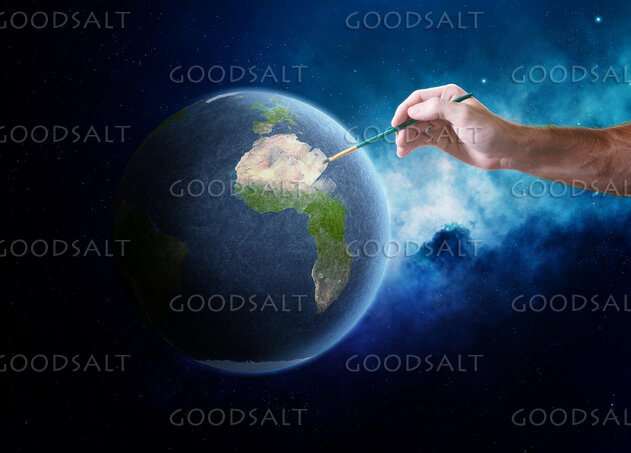 A man painting the planet earth with a paint brush. by Kevin Carden