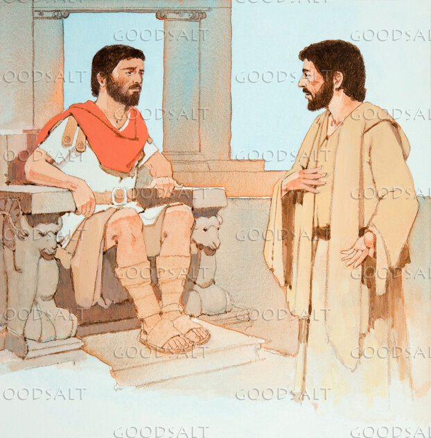 6 After he stayed among them not more than eight or ten days, he went down to Caesarea. And the next day he took his seat on the tribunal and ordered Paul to be brought.7 When he had arrived, the Jews who had come down from Jerusalem stood around him, bringing many and serious charges against him that they could not prove.8 Paul argued in his defense, “Neither against the law of the Jews, nor against the temple, nor against Caesar have I committed any offense.”9 But Festus, wishing to do the Jews a favor, said to Paul, “Do you wish to go up to Jerusalem and there be tried on these charges before me?”10 But Paul said, “I am standing before Caesar's tribunal, where I ought to be tried. To the Jews I have done no wrong, as you yourself know very well.11 If then I am a wrongdoer and have committed anything for which I deserve to die, I do not seek to escape death. But if there is nothing to their charges against me, no one can give me up to them. I appeal to Caesar.”12 Then Festus, when he had conferred with his council, answered, “To Caesar you have appealed; to Caesar you shall go.”