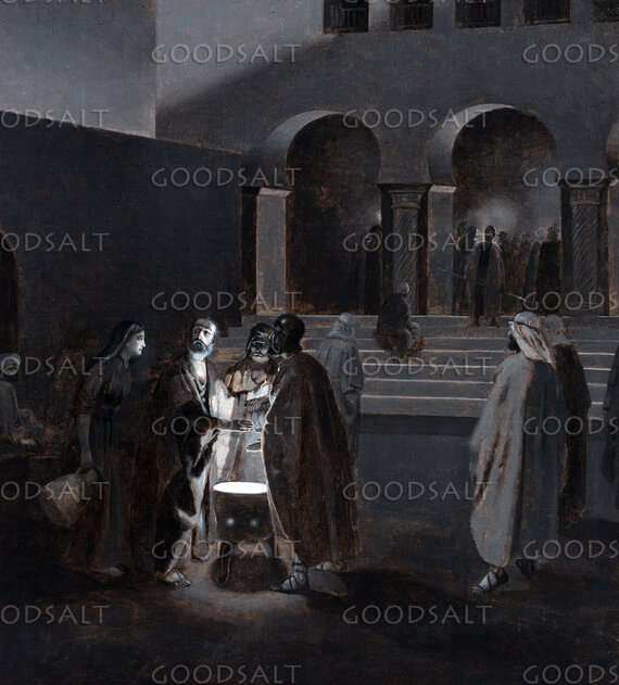 Luke 2231 “Simon, Simon, behold, Satan demanded to have you, that he might sift you like wheat,32 but I have prayed for you that your faith may not fail. And when you have turned again, strengthen your brothers.”33 Peter said to him, “Lord, I am ready to go with you both to prison and to death.”34 Jesus said, “I tell you, Peter, the rooster will not crow this day, until you deny three times that you know me.” Luke 2254 Then they seized him and led him away, bringing him into the high priest's house, and Peter was following at a distance.55 And when they had kindled a fire in the middle of the courtyard and sat down together, Peter sat down among them.56 Then a servant girl, seeing him as he sat in the light and looking closely at him, said, “This man also was with him.”57 But he denied it, saying, “Woman, I do not know him.”58 And a little later someone else saw him and said, “You also are one of them.” But Peter said, “Man, I am not.”59 And after an interval of about an hour still another insisted, saying, “Certainly this man also was with him, for he too is a Galilean.”60 But Peter said, “Man, I do not know what you are talking about.” And immediately, while he was still speaking, the rooster crowed.61 And the Lord turned and looked at Peter. And Peter remembered the saying of the Lord, how he had said to him, “Before the rooster crows today, you will deny me three times.”62 And he went out and wept bitterly. | |